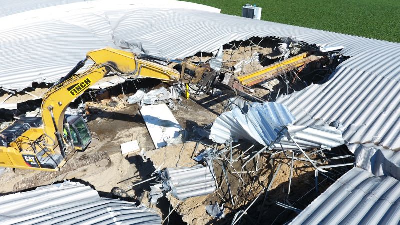 The existing manufacturing building 1 of 3 buildings collapsed due to snow on March 24th of this year. This building is being demolished and replaced with a new $2 million Free Span Pre-Engineered Building that will replace the collapsed building.