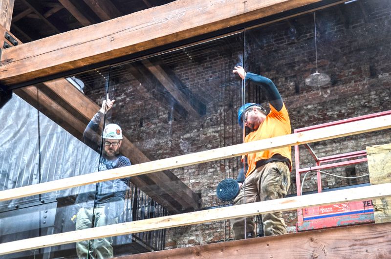 Interior glass is being installed. Electrical, HVAC and plumbing contractors were also on site.