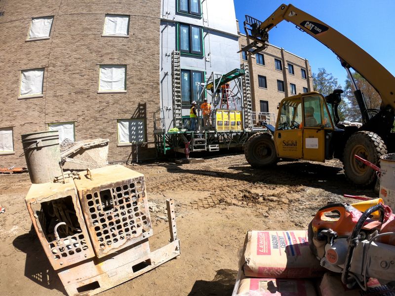 Steady progress continues on this four-story independent living construction project will include the addition of 18 (six, two-bedroom and twelve, one-bedroom) senior living apartments with balconies. An eight-vehicle unattached garage and an underground stormwater detention system on the site will also be added. Also under way is demo/renovation to the existing building to accomodate more apartments.