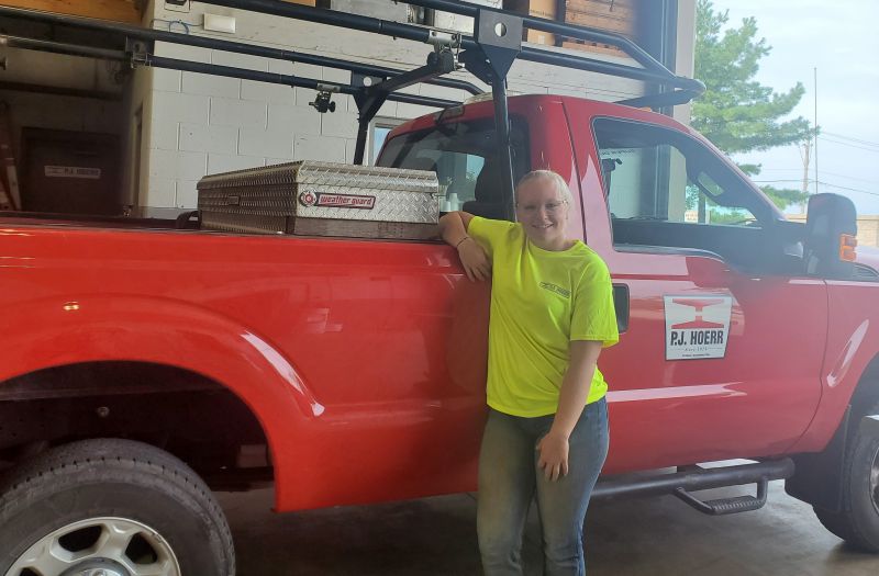 Mattie Ford is currently working for P.J. Hoerr as summer help in the shop. She will be shipping out in August to Paris Island in South Carolina for basic training to become a US Marine. She started working for P.J. Hoerr after graduation working on misc. jobs that include landscaping, cleaning/organizing the shop and yard, loading/unloading trucks, detailing company trucks and anything else they needed help with out there.