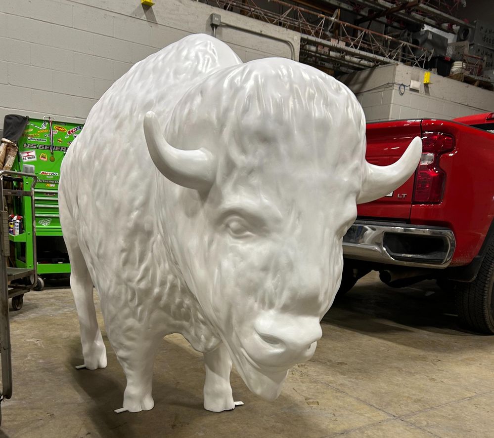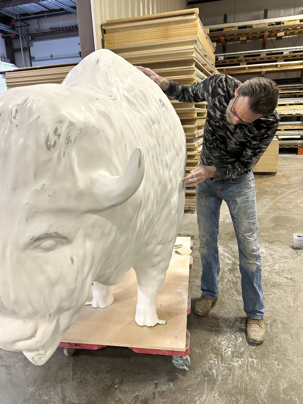 We, of course, aren't going to show you the design of what Benny will look like, what kind of a surprise would that be! BUT, we will share a few ideas we had in the beginning phases. For our first mockup, we thought we'd just put him in what we wear every day on our construction site. Boots, high vis, a hard hat, and glasses. Truth be told, Benny isn't a little guy, nothing we had would fit! After that idea was thrown out, we thought he might look good with some construction equipment glued to him. Creating a jobsite scene, if you will, all across his back. That idea was tossed too after finding out Benny has just as much flat surface as a real Bison. Finally, we settled on our current design. It showcases PJ Hoerr as well as some of our favorite tidbits of the place we call home. We're so excited to share him with you when he's complete!