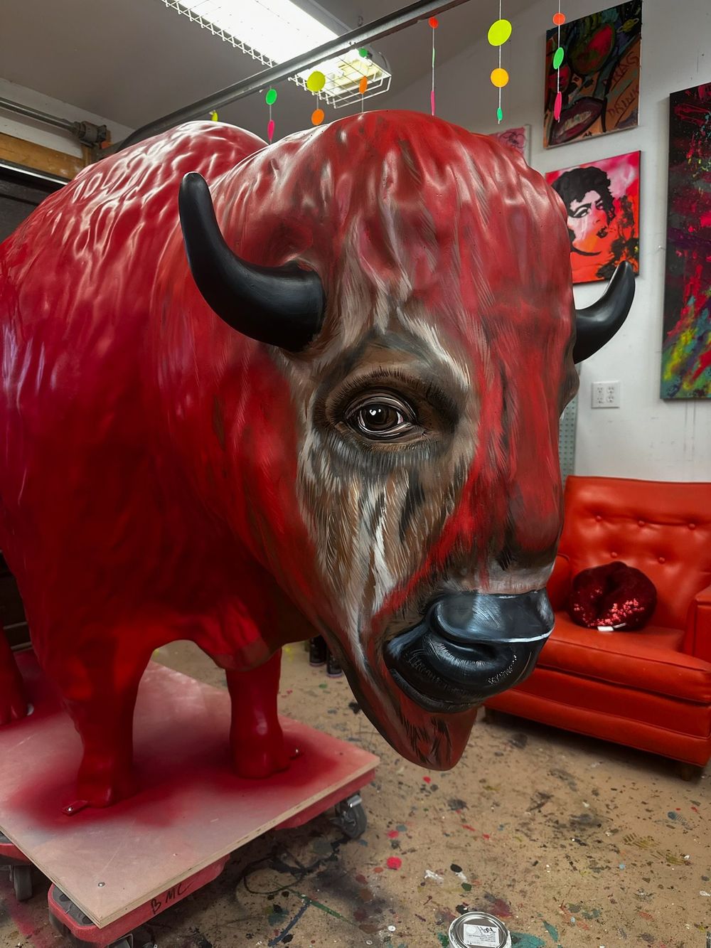 Benchmark Cabinets deserves a special shoutout for building all the bases for the bison around Peoria and transporting Benny wherever he needed to go. One final note: Megan freehanded all the lettering on this bison, including our complex logos...I'm not sure how either.