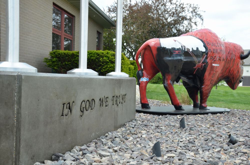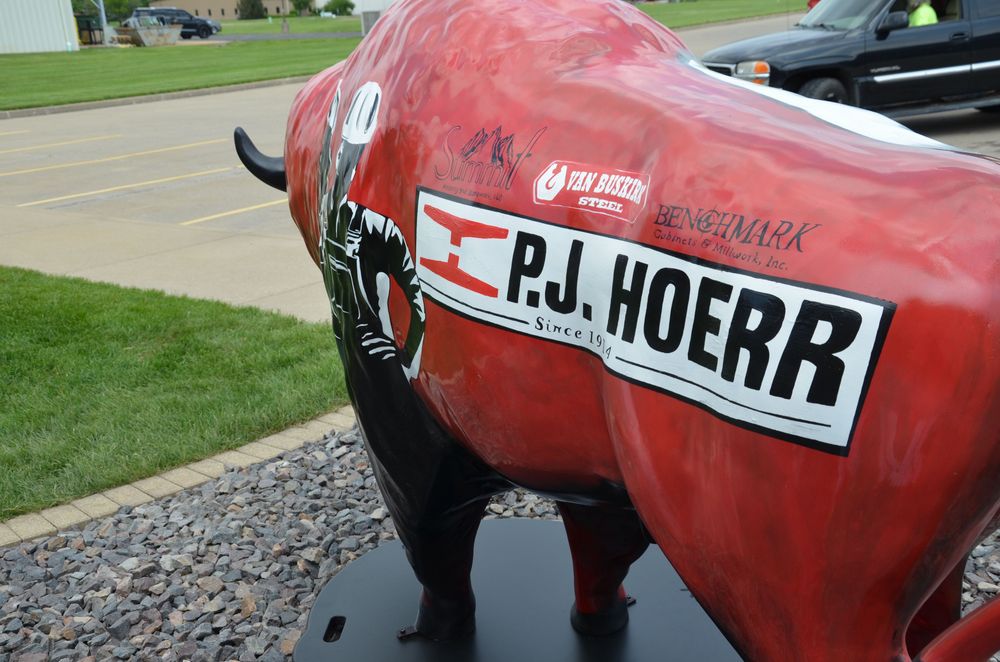 Benny has reached his home! He sits right outside our front doors in our newly renovated landscaping for all PJ employees, visitors, and potential customers to see. I'm sure as years pass, we'll get our fair share of, "What's the deal with that big red bison out front?" But those who were part of it will remember Benny as a symbol of a project that brought our community together—and united our PJ Hoerr team in a special way. That's one thing about PJ Hoerr, we're a team.
