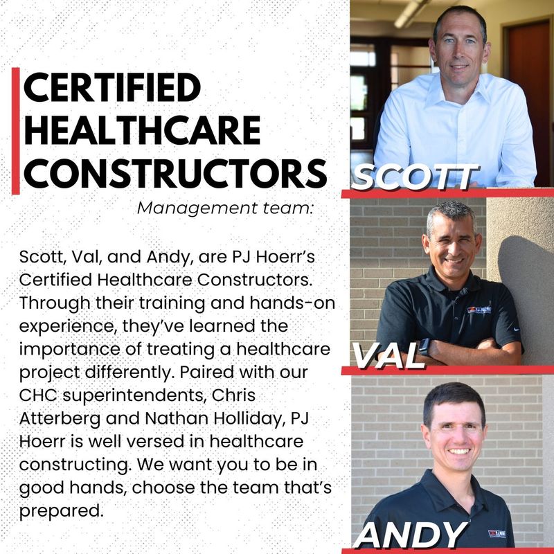 MoreTEAM: Managerial: Scott Rinkenberger, CEO Val Ramirez, Project Manager Andy McCoy, Project Manager Field: Nathan Holliday, Superintendent Chris Atterberg, Superintendent Here's a breakdown on what CHC's can do for your next healthcare project: Certified Healthcare…